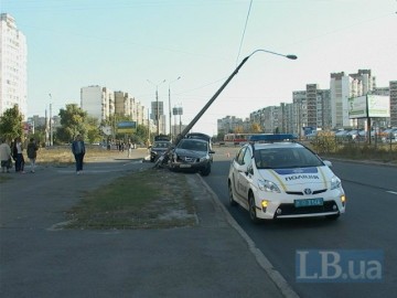 В воскресенье, в Киеве на улице Ревуцкого кроссовер Nissan Qashqai, двигаясь в направлении улицы Здолбуновской, снес дорожный знак и протаранил бетонную электроопору, сообщает .