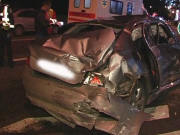 Киев: ночью столкнулись BMW, микроавтобус Volkswagen и грузовик Mercedes. Пострадали 4 человека. (Видео)