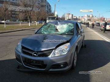 Киев: Opel Vectra зацепил Volkswagen Caddy, сбил насмерть пешехода, отправив его в Fiat Linea. (Фото)
