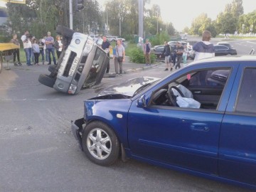 На перекрестке столичных улиц Луговой и Дегтяренко столкнулись автомобили Geely и Nissan. В результате удара японская иномарка опрокинулась и сбила светофор. Только чудов в этой аварии никто не пострадал, сообщает .
