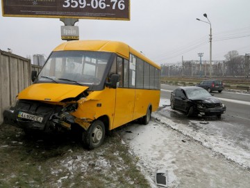 Киев: последствия гололеда - Skoda Octavia протаранила маршрутку. (Фото)