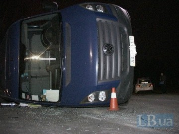Киев: пьяный водитель врезался в перевернутый микроавтобус. (Фото)