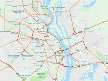 Проспект Победы загружен с востока на запад от ст. м. Шулявская до ст. м. Нивки. Пробка на Набережном шоссе, Харьковском шоссе, проспекте Степана Бандеры, улице Елены Телиги, улице Жилянской, улице Большой Васильковской и частично на бульваре Леси Украинки.