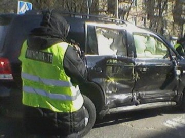 Киев: столкнулись маршрутка и внедорожник Mercedes. (Фото)