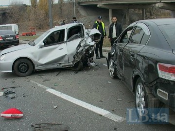 В субботу днем в Киеве на улице Саперно-Слободской произошло ДТП с участием трех автомобилей, в результате которой одна из машин перевернулась на крышу, сообщает .