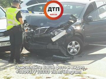 По предварительным данным, водитель Ssang Yong скрываясь от полиции, резко повернул с проспекта Бандеры на Иорданскую, где совершил столкновение с кроссовером KIA.