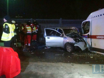 По словам очевидцев, на части дороги, где проводились строительные работы, автомобиль ZAZ выехал на встречную полосу и лоб в лоб протаранил "скорую".