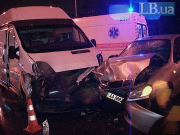 По предварительным данным, такси Daewoo Lanos двигался со стороны Дарницкого кладбища. По всей вероятности, таксист не справился с управлением на мокрой от дождя дороге, автомобиль выехал на "встречку" и лоб в лоб врезался в микроавтобус Opel, двигавшийся навстречу.