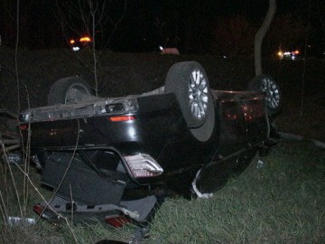 Во вторник вечером под Киевом на Столичном шоссе автомобиль BMW-750 протаранил микроавтобус Mercedes, после чего снес светофор, вылетел в кювет и перевернулся, сообщает .