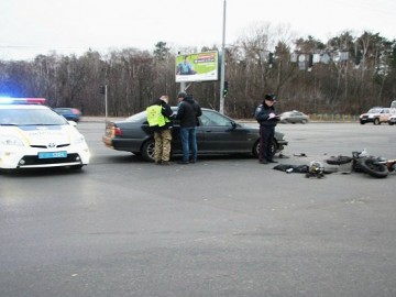 Киев: в тройном столкновении с BMW и Mercedes пострадал мотоциклист. (Фото)