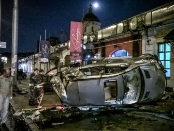 "Дорогое" ДТП произошло в Киеве на ул.Набережно-Крещатицкой, на съезде с Гаванского моста на Набережно-Крещатицкую, в районе дома 25, в ночь с 12 на 13.07.2014, около 02:50, сообщает .