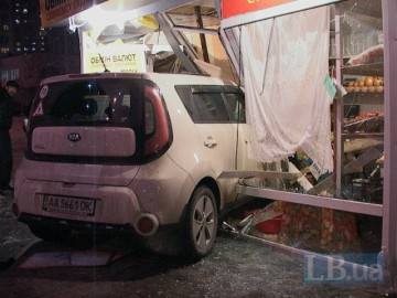 Киев: во время ДТП машина вылетела на тротуар и протаранила киоск. (Фото)