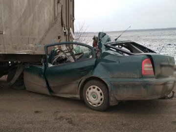 Местная полиция сообщила, что водитель Skoda Octavia на прямом участке дороги допустил столкновение с полуприцепом грузовика Volvo, которые ехал впереди в попутном направлении.
