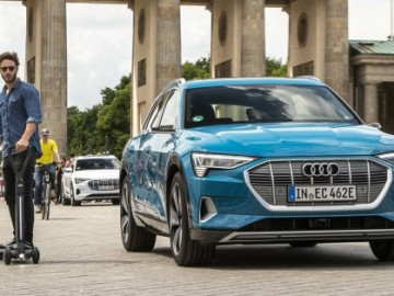 Кроссовер Audi e-tron официально представили осенью прошлого года. Автомобиль укомплектовали двумя электромоторами суммарной мощностью 360 лошадиных сил, которые в режиме overboost способны выдавать 408 сил. Также новинку оснастили электрическим полным приводом и системой рекуперации энергии: до перегрузки в -0,3g автомобиль накапливает энергию без использования обычной тормозной системы. Это обеспечивает ему до 30 процентов запаса хода.