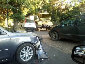 Крым: в Симферополе российский "Град" попал в ДТП. (Фото)