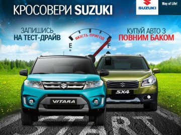 ДП «АВТО Інтернешнл», офіційний дистриб'ютор автомобілів та мототехніки SUZUKI в Україні, запрошує пройти тест-драйв кросоверів SUZUKI і придбати автомобіль із повним баком палива!.