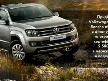 Купуючи Volkswagen Amarok Rancho або Jager з фінансуванням отримай сертифікат мережі STVOL номіналом 2 500 грн. в подарунок!*