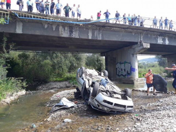 Львовская область: автомобиль слетел с моста в реку. (Фото)