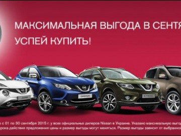 До 30 сентября у Вас есть возможность ощутить все прелести автомобилей модельной линейки Nissan и при этом прилично сэкономить.