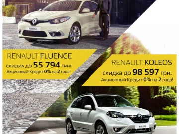 Приобретая – RENAULT? KOLEOS и RENAULT? FLUENCE в этом месяце - получаете выгоду до 98 597 грн и до 55 794 грн соответственно!