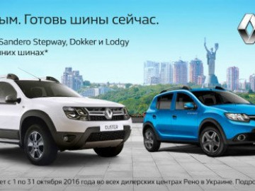 «НИКО Прайм Мегаполис», официальный дилер Renault в Киеве и Киевской области, до конца октября дарит* каждому покупателю автомобилей Lodgy, Dokker, Sandero Stepway (дизель) и Duster комплект зимних шин.