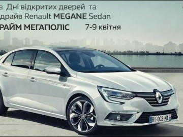 «НИКО Прайм Мегаполис» приглашает с 7 по 9 апреля 2017 г.на Дни открытых дверей, чтобы познакомиться с новинкой – автомобилем Renault Megane седан, пройти тест-драйв и выиграть фотосессию от Renault.