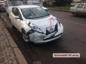 В центре Николаева 11 декабря, на пересечении проспекта Центрального и улицы Садовой столкнулись электрокар Nissan Leaf и маршрутное такси Mercedes, сообщает .