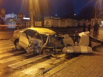 "Около 6:00 часов утра 23-летний водитель автомобиля Kia Cerato, осуществляя движение по пр. Центральном от ул. Пушкинской в направлении ул. Генерала Карпенко не справился с управлением, выехал за пределы проезжей части дороги и столкнулся с установленным на тротуаре торговым киоском, а затем – с электроопорой", – говорится в сообщении.