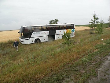 Николаевская область: пассажирский автобус протаранил Mitsubishi и вылетел в кювет. (Фото)
