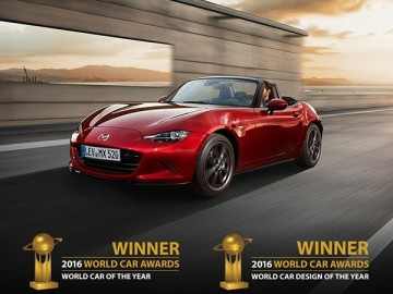 Четвертое поколение Mazda MX-5 назван абсолютным автомобилем 2016 года (World Car of the Year - WCOTY) и автомобилем с лучшим дизайном в мире. Для Mazda награда Абсолютный автомобиль года - это вторая награда после Mazda 2, которая еще в получила еще в 2008 году, а также первая модель в истории награждения WCOTY, которая завоевала обе награды.