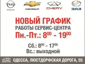 Сообщаем Вам, что с 21 августа 2014 года для Вашего удобства действует новый удобный график работы СЕРВИСНОГО ЦЕНТРА АВТО ГРУП!.