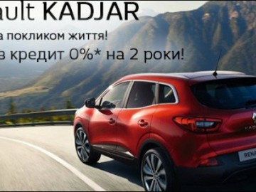 Разом зі стартом продажів пропонується кредитна пропозиція за програмою Renault Finance. На новий Renault KADJAR діє кредит 0% на 2 роки** за умови першого внеску 55%.