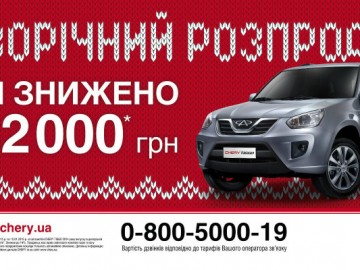 Официальный дистрибьютор автомобилей Сhery в Украине ООО «Си Эй Автомотив» подготовил приятную новогоднюю новость для желающих стать владельцами автомобилей Chery.