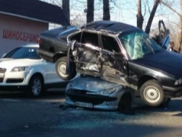 Одесса: BMW протаранил Daewoo и заскочил на крышу Peugeot. (Фото)
