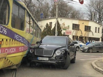 В Одессе на днях произошло весьма интересное ДТП. Новый внедорожник Bentley Bentayga столкнулся с трамваем.