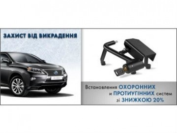 У зв’язку з почастішанням крадіжок автомобілів, Лексус Київ Захід рекомендує встановлення додаткових охоронних і протиугінних систем. Знижка на послуги з встановлення — 20%. Пропозиція діє з 01.10 по 30.11.14.