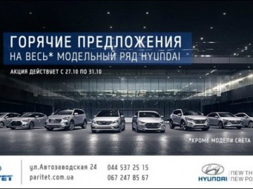 Только с 27 по 31 октября в Автоцентре «ПАРИТЕТ» действует специальное предложение для всего модельного ряда автомобилей HYUNDAI! .