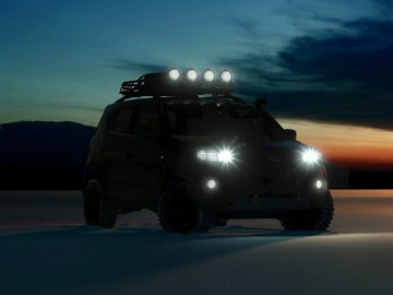 В лучших традициях фото-тизеров автомобиль скрыт в сумерках, и можно рассмотреть только новую форму кузова и агрессивный прищур головной оптики. Известно, что концепт предстанет перед посетителями автосалона на внедорожных колесах размерностью 235/70/R16, со шноркелем, рейлингами, запасным колесом и дополнительной световой балкой, а также с защитой двигателя и переднего моста.