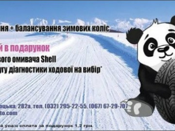 Зроби на "Львів-Авто" бортування і балансування зимових коліс і отримай в подарунок зимовий омивач вікон TM Shell або зроби безкоштовну діагностику ходової.