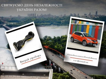 Компанія Renault в Україні підготувала до Дня Незалежності України цікавий розіграш фірмового гіроборда з Renault Boutique в соціальній мережі Facebook.