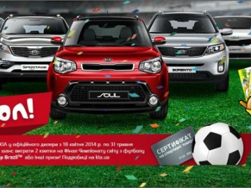 Только до 31 мая 2014 года, купив автомобиль КІА, Вы имеете шанс выиграть билеты на финал Чемпионата мира по футболу в Бразилии FIFA 2014 или другие ценные призы!.