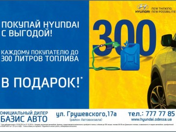 Покупай HYUNDAI с ВЫГОДОЙ! 300 литров топлива в подарок!