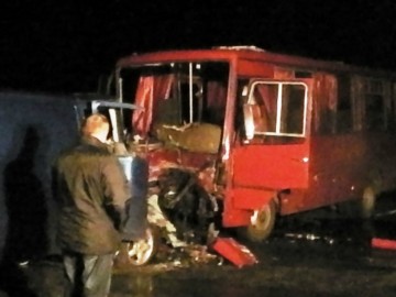 1 мая, около полуночи на 302 км автодороги "Киев - Харьков" произошло столкновение микроавтобуса «Volkswagen Т-4», который двигался в сторону Харькова, и автобуса «ХАЗ-3250», который двигался навстречу.