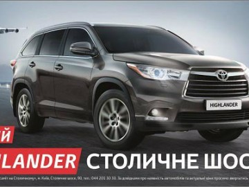 Завітайте на прем’єрний тест-драйв нового Toyota Highlander з 29 березня по 6 квітня 2014 року в автосалоні офіційного дилера Тойота Центр Київ «Автосаміт на Столичному» на території України.