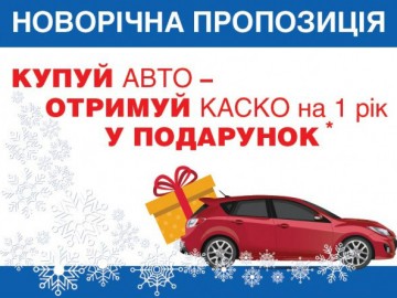 * Под подарком подразумевается покупка страхового полиса КАСКО за 1 грн. по условиям: франшиза по повреждениям 2%, франшиза при противоправном лишении ТС и конструктивной гибели ТС 5%, к управлению допущена любое лицо на законных основаниях с водительским стажем более 2 лет, ТС не сдаются в аренду, лизинг, не используются службами оперативного реагирования, скорой и неотложной помощи, такси, расчет страхового возмещения с учетом износа, согласно калькуляции СТО. Предложение действует при покупке автомобиля с пробегом в AIS Autotrade м. Киев, ул. Балтийский, 20 из 01.12.2017р. по 01.01.2018р. при условии 100% оплаты стоимости автомобиля наличными. Страховые партнеры: ОАО «СК АХА Страхование», лицензия Держкомфинуслуг №483293 от 17.09.2009р. СК Универсальная лицензия Держкомфинуслуг №569722 от 23.03.2011г.