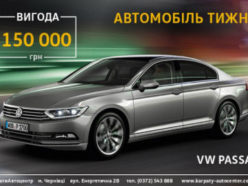 Лише протягом 7 днів Ви маєте можливість скористатись акцією автомобіль тижня і стати власником преміального VW Passat із вигодою 150 000грн.