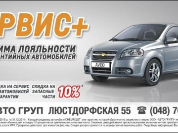*Предложение действует с 1.01 по 31.12.2016г. Каждый владелец автомобиля CHEVROLET вне гарантии, который обратится в сервисный центр ”АВТО ГРУПП”
