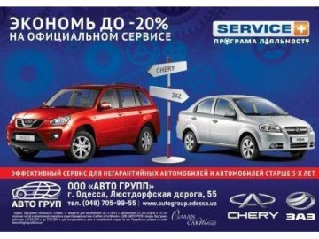 Автоцентр АВТО ГРУП заботясь о своих клиентах, объявляет о старте новой программы лояльности SERVICE+ для негарантийных автомобилей ZAZ, Chery!.