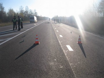 В результате дорожно-транспортного происшествия пешеход от полученных телесных повреждений погиб на месте происшествия.