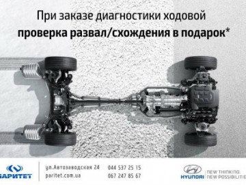 В период с 15 сентября по 15 октября 2016 года в автоцентре «ПАРИТЕТ» действует специальное сервисное предложение для владельцев автомобилей Hyundai в рамках которого мы бесплатно* проверим углы установки колес (развал/схождение) Вашего автомобиля на стенде Hofmann 3D Geoliner, при заказе услуги диагностики ходовой.